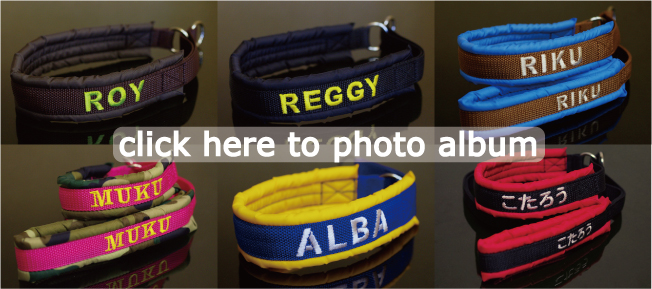 ベルト部分にワンちゃんのネームを刺しゅうで入れることが出来ます